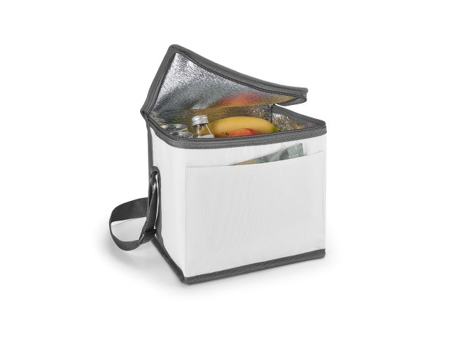 Bolsa térmica. 600D. Com alça ajustável em webbing e bolso frontal. Cap