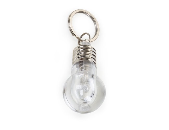 Chaveiro lâmpada com botão de acionamento na área metálica, acompanha baterias.