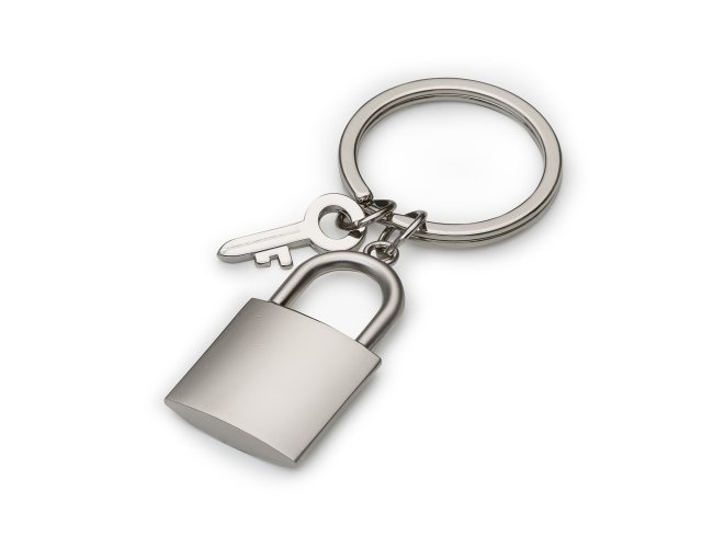 Chaveiro metal formato cadeado fosco e chave brilhante. Cadeado frente e verso liso(apenas visual 3D, não tem a função de cadeado).